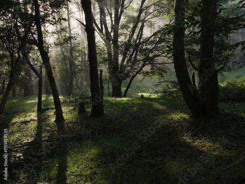 Obraz premium 光差す森の中