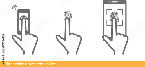 Fototapeta premium 指紋認証の人差し指イラストセット 銀行 スマホ 携帯電話