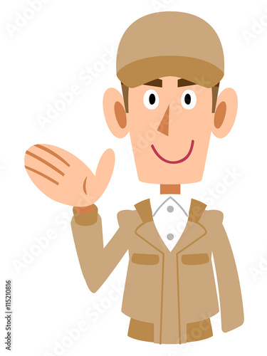© haru_natsu_kobo, Obraz premium 案内する作業着の男性