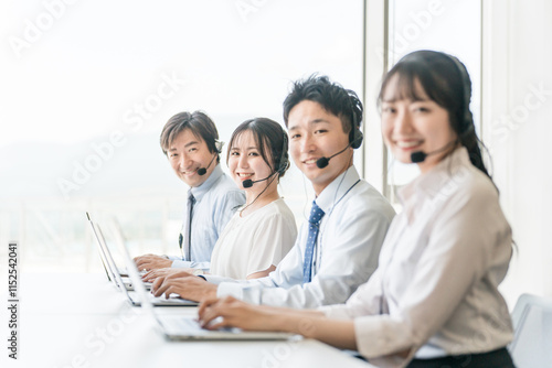 Fototapeta premium コールセンターのオペレーターチームの男女(テレオペ・テレアポ)