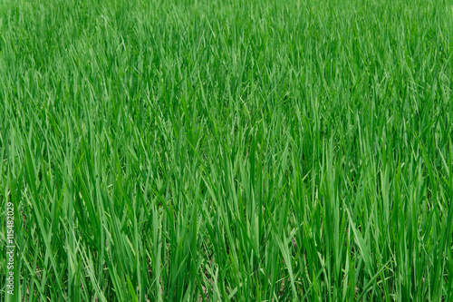 Obraz premium 成長する稲で緑に染まる田んぼ