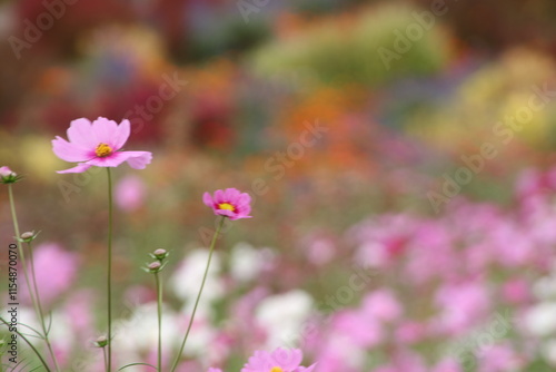 Obraz premium カラフルな背景とコスモス