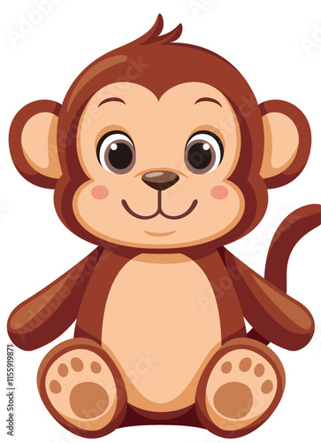 Obraz premium 座っている可愛いサルのぬいぐるみイラストアイコン
