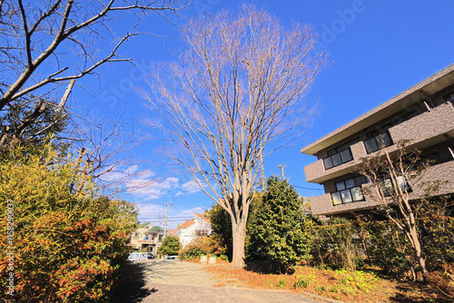© Satoshi, Obraz premium 大きな木のあるマンション