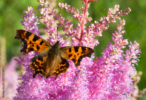 © galina_savina, Obraz premium Коричневая бабочка на розовом цветке.