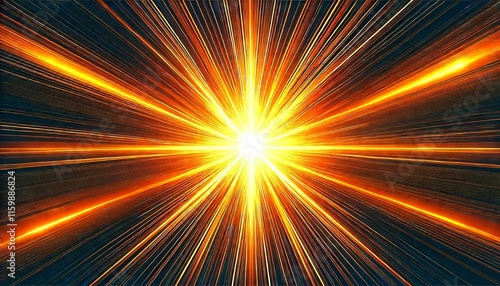 © sata, Obraz premium 中心から放射される金色の閃光と暗闇の背景