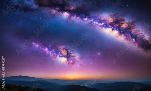 © 상우 최, Obraz premium 화려한 우주 풍경을 상상해 보세요. 강렬한 보라색, 깊은 파란색, 반짝이는 분홍색이 어우러져 소용돌이치는 성운을 형성합니다.