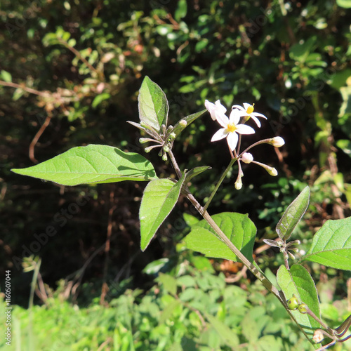 Obraz premium 日本で冬にワルナスビが白い花を咲かせています