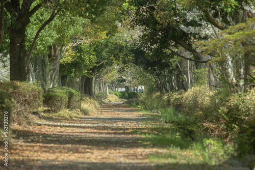 © wata _Japan, Naklejka premium 木々の緑が覆う静かな散歩道