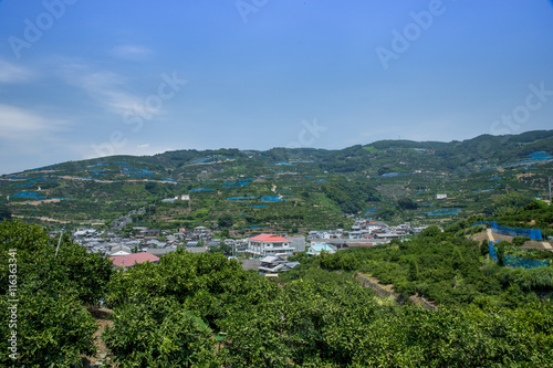 © Yoshinori Okada, Fototapeta premium みかんの段々畑(愛媛県八幡浜川上)
