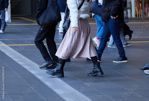 © zheng qiang, Obraz premium 冬の昼の大阪市の繁華街の大阪駅の広場で歩く人々の姿