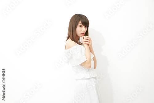 Fototapeta premium スタジオポートレート 女性 ストレートヘア 白バック