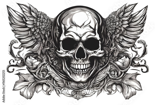 © Gon Hayasaka, Obraz premium 頭蓋骨と羽の装飾イラスト