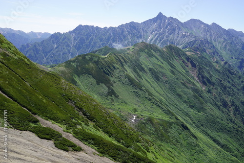 Naklejka premium 槍ヶ岳 硫黄乗越 山脈 山々 山頂 眺望 北アルプス 登山 空 絶景