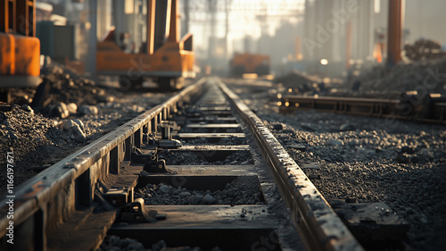 Obraz premium 工事中の線路と建設現場のリアルな光景