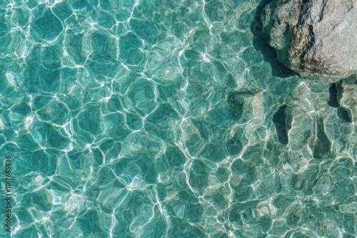 © pham, Fototapeta premium 青い水面に映る光の美しさと石の存在