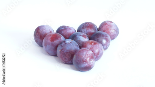 © romanklevets, Obraz premium Спелые сочная сливы лежит на белом фоне