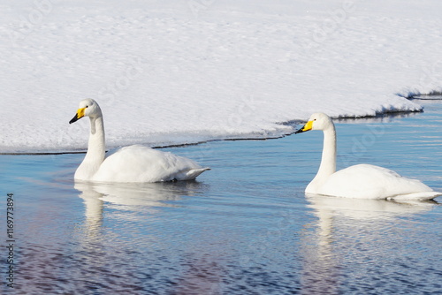 Fototapeta premium 湖面に浮かぶ白鳥