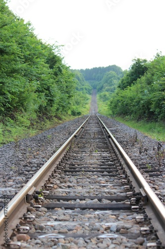 Obraz premium 遠くまで続く一本の線路