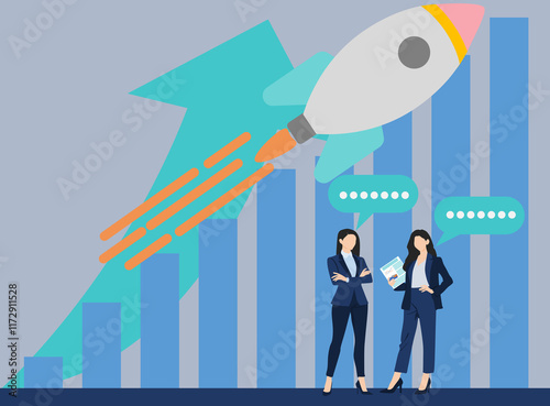 Obraz premium 経営戦略を考えるビジネスウーマンのイラスト