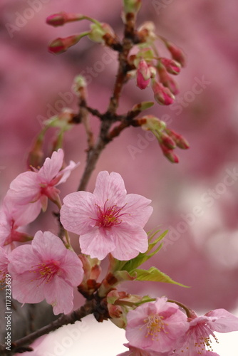 Obraz premium 鮮やかなピンク色の早咲き桜