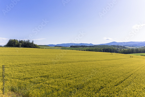 Naklejka premium 美瑛・パッチワークの路の麦畑