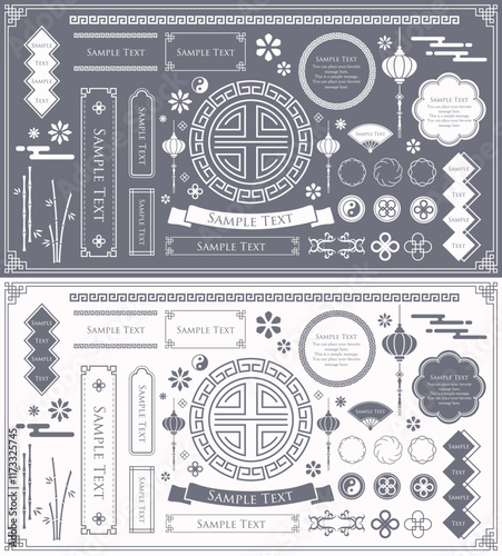 © DESIGN BOX, Fototapeta premium 旧正月や春節のフレームデザイン。アジアンフレームセット。