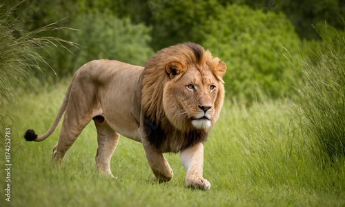 Obraz premium 위엄한 사자사진 사냥을 준비하고 있다