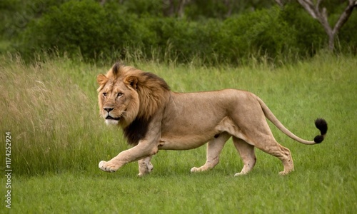 Obraz premium 사냥을 준비하는 사자 사진 위엄있다
