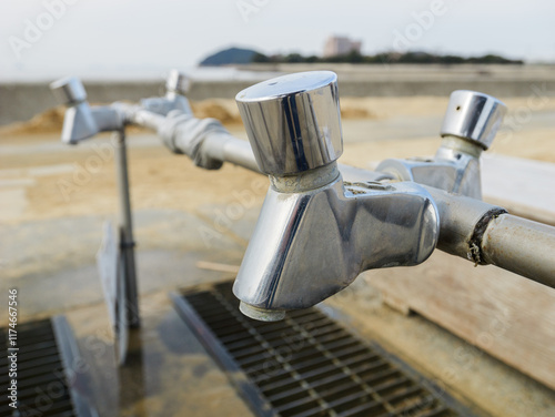 Obraz premium 海水浴場の足洗い場