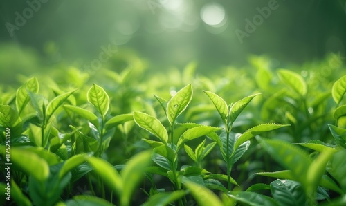 © 炳伟 梁, Fototapeta premium 晨曦茶园茶叶农作物绿色生态环保背景