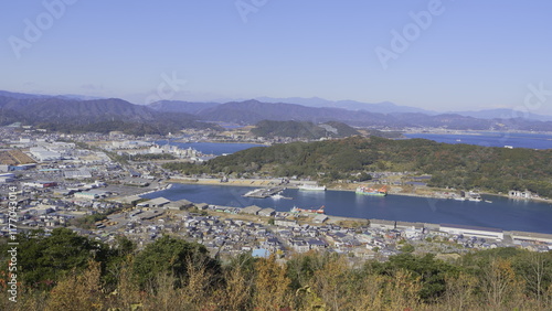 Obraz premium 宮崎県日向市の米の山から見た細島港