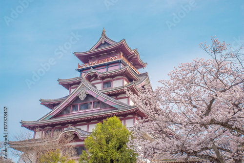 Fototapeta premium 日本の京都にある伏見桃山城と桜