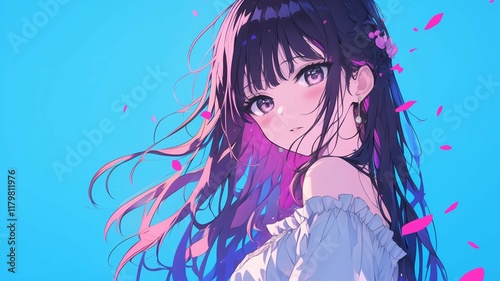 © てんぷら, Naklejka premium アニメ調の日本人美少女の様々なシーン_表情