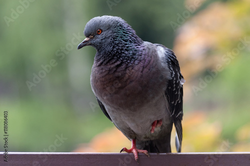 Obraz premium Голубь, сидящий поджав одну лапку