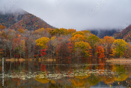 © Snoopy walk, Naklejka premium 山並と紅葉