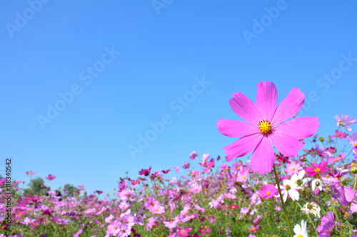 Obraz premium コスモスの花と 青空背景
