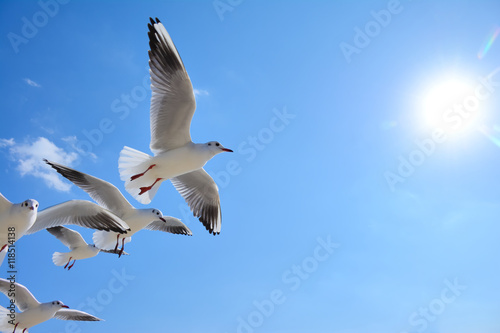 © tamayura39, Naklejka premium 青空を飛ぶカモメの群れ