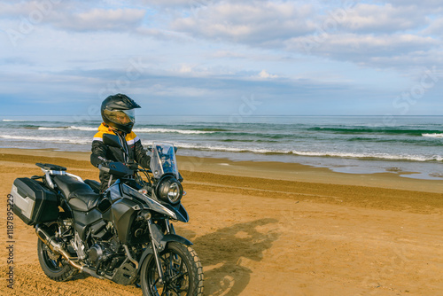 © Junji_Camera, Obraz premium 海岸線を走るバイク
