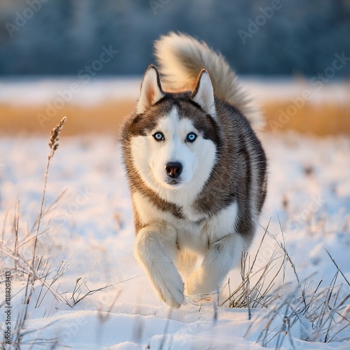 © bizdesigner.1, Fototapeta premium 雪原を走るシベリアンハスキー