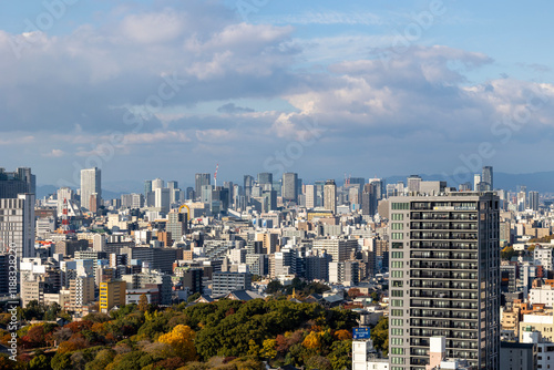 Fototapeta premium ビルの高層階から見た大阪の街並み(2024年12月撮影)