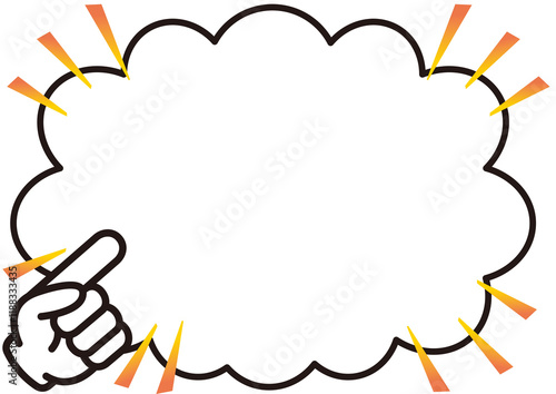 Fototapeta premium フレーム,吹き出し,指,手,お知らせ,メッセージ,注目,大事,広告,デザイン,チラシ,見出し,タイトル,枠,囲み枠,フキダシ,セリフ,会話,かわいい,素材...