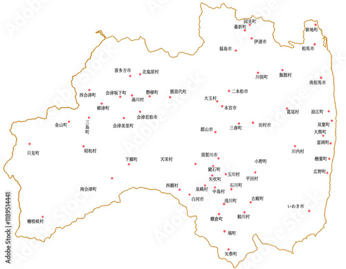Obraz premium 福島県 地図 白 斑点 イラスト