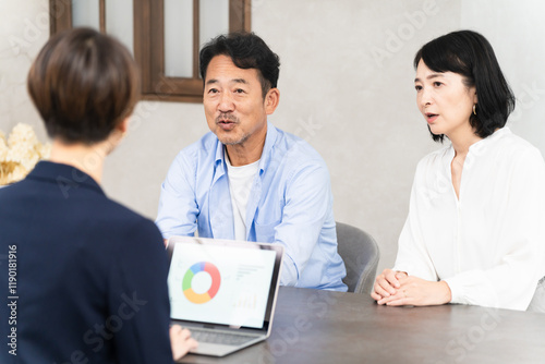 Obraz premium 熟年夫婦と保険外交員 ビジネスイメージ