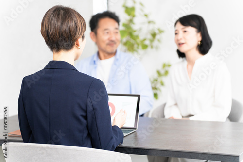Obraz premium 熟年夫婦と保険外交員 ビジネスイメージ