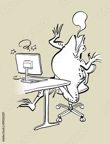© freehand, Obraz premium パソコンと蛙-お手上げ