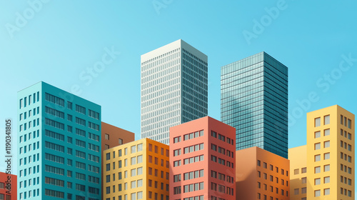 Naklejka premium カラフルな建物が並ぶ都市イラスト背景素材