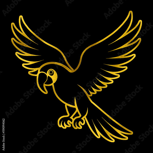 © n.s, Fototapeta premium 飛んでいるオウムのゴールドのシルエットイラスト 黒背景の切り抜き