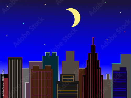 © shin28, Fototapeta premium 三日月の夜のオフィス街
