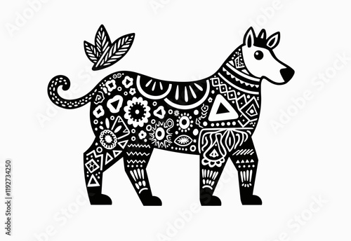 Fototapeta premium 黒白幾何パターンイラスト平面民俗スタイルミニマリストクリップアートクリエイティブプロジェクト用